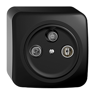 STANDARDdue (SNAPFIX) • Antennendose für R/TV/SAT • Mit Schraubklemmen • Frontscheibe 53 mm, für Bohrung 50 mm • DB53 • Stich • F-Anschluss • Mit Isoliergehäuse • SNAPFIX® Befestigungssystem • Anbauhöhe 56 mm • QX.54.A • schwarz • IP20 • 66 x 62 mm