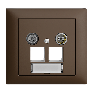 Presa multimediale EASYNET 5-2000 MHz • Schermatura di classe A (+10 dB) • Presa passante/presa terminale • Resistenza terminale integrata • Per due moduli di raccordo RJ45 S-One • Con targhetta • Attenuazione 29 dB • Profondità 33 mm • FKE • coffee • IP20 • 80 x 86 mm