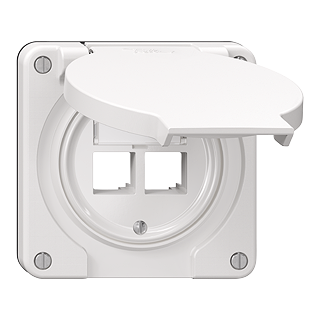 EASYNET Montageset S-One • Für gerade Steckrichtung • Für zwei RJ45-Anschlussmodule S-One • Frontscheibe 60 mm, für Bohrung 60 mm • Ohne Anschlussmodule • Zweifach • Mit Papiereinlage • Einbautiefe 28 mm • N.CO.Q • weiss • IP55 • 87 x 87 mm • Schlagfestigkeit: IK07