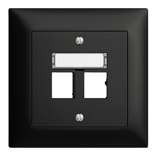 Kit di montaggio Cat. 5e/6 • Per modulo di raccordo R&M freenet Cat. 5e/6, con piastra di supporto • Innesto dritto • Doppia • Con targhetta • Profondità 37 mm • FMI • nero • IP20 • 88 x 88 mm