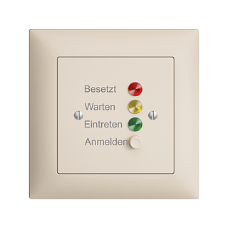 Stazione da porta per segnali di chiamata • Con pulsante e cicalino • Indicazione con LED rosso, giallo e verde • Con morsetti a vite • Iscrizione tedesca • Profondità 20 mm • FMI • crema • IP20