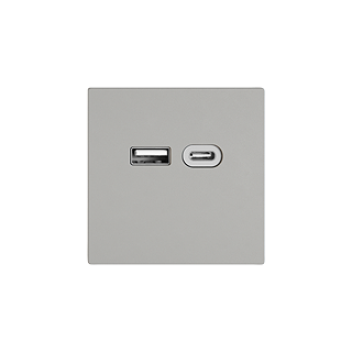 EDIZIO.liv • Presa di carica USB • 230 V AC • Potenza di uscita 18 W • Possono collegare in parallelo fino a 2 apparecchi • Potenza assorbita (stand-by) mass. 100 mW • Protenzione contro il sovraccarico e resistenti ai cortocircuiti • 1 x USB tipo A, 1 x USB tipo C • Tensione in uscita 5-12 V DC • Con morsetti a innesto • Sistema de fissagio SNAPFIX® • Profondità 41 mm • G.A • grigio chiaro • IP20 • 60 x 60 mm