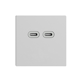 Prise de charge USB • 230 V AC • Puissance de sortie 18 W • Possible de connecter 2 appareils en parallèle • Consommation (en veille) max. 100 mW • Protection contre la surcharge et résistant au court-circuit • 2 prises USB type C • Tension de sortie 5-12 V DC • Avec bornes enfichables • Profondeur 41 mm • F • gris clair • IP20 • 60 x 60 mm