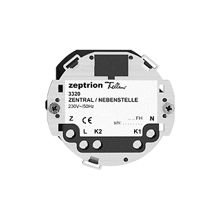 Frutto zeptrion stazioni centrali-secondari • Stazione centrale/secondaria senza potenza • 230 V AC • Per pulsante zeptrion, per zeptrion IR, per temporizzatore zeptrion 3320, 3321, 3322, 3324, 3326, 3328,3330 • Profondità 23 mm • BSE • IP20 • Distanza di fissaggio 52 mm