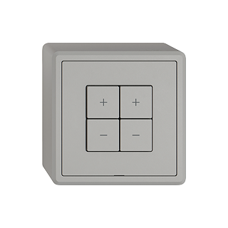 EDIZIO.liv • Wiser LED-Universaldimmer 2-Kanal • 2 dimmbare Ausgänge, 230 V AC • 2 separate Dimmkreise • Für dimmbare Retrofit LED 75 VA (RC) / 25 VA (RL) • Für dimmbare Trafo (RC/RL) mit NV-Leuchtmittel (Halogen, LED) 150 VA • Mischlastbetrieb von elektronischen und konventionellen Transformatoren nicht möglich • Minimale und maximale Helligkeit einstellbar • Mit Steckklemmen • Beleuchtbar mit integrierter LED • 4 Tasten • SNAPFIX® Befestigungssystem • Anbauhöhe 57 mm • GX.54.A • hellgrau • IP20 • 74 x 74 mm