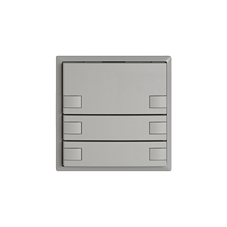 EDIZIO.liv • Pulsante UNI • 12-48 V DC / 12-36 V AC • Corrente di commutazione min 1 mA, max. 50 mA • Mass. 14 L • Con morsetti a vite • Senza LED • Tasto triplo • Comando a 2 tasti • Sistema de fissagio SNAPFIX® • Profondità 17 mm • G.A • grigio chiaro • IP20 • 60 x 60 mm