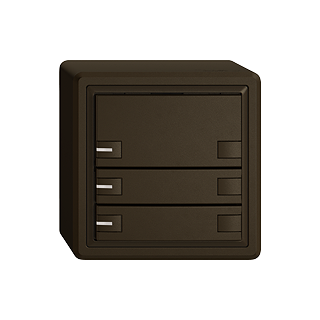 EDIZIO.liv • Pulsante UNI • 12-48 V DC / 12-36 V AC • Corrente di commutazione min 1 mA, max. 50 mA • Mass. 14 L • Con morsetti a vite • Con LED blu • Tasto triplo • Comando a 2 tasti • Sistema de fissagio SNAPFIX® • Altezza 59 mm • GX.54.A • umbra • IP20 • 74 x 74 mm