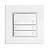 EDIZIO.liv • Pulsante UNI • 12-48 V DC / 12-36 V AC • Corrente di commutazione min 1 mA, max. 50 mA • Mass. 14 L • Con morsetti a vite • Con LED blu • Tasto triplo • Comando a 2 tasti • Sistema de fissagio SNAPFIX® • Altezza 59 mm • GX.54.A • bianco • IP20 • 74 x 74 mm