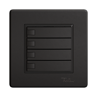 EDIZIO.liv • Pulsante UNI • 12-48 V DC / 12-36 V AC • Corrente di commutazione min 1 mA, max. 50 mA • Mass. 14 L • Con morsetti a vite • Senza LED • Tasto quadruplo • Comando a 1 tasto • Sistema de fissagio SNAPFIX® • Profondità 17 mm • GMI.A • nero • IP20 • 96 x 96 mm (93 x 93 mm)
