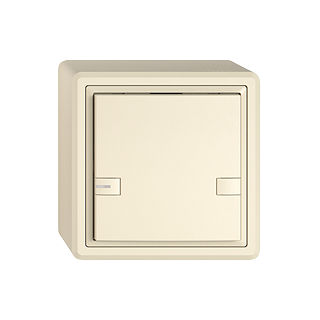 EDIZIO.liv • Poussoir UNI • Connecteur enfichable (sans connecteurs pour circuits imprimés) • Avec LED bleu • Touche simple • Commande à 2 touches • Système de fixation SNAPFIX® • Hauteur 59 mm • GX.54.A • crema • IP20 • 74 x 74 mm