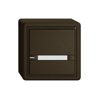 EDIZIO.liv • Pulsante UNI • Collegamento ad innesto (senza connettori per circuiti stampati) • Con LED blu • Con targhetta • Tasto semplice • Comando a 2 tasti • Sistema de fissagio SNAPFIX® • Altezza 59 mm • GX.54.A • umbra • IP20 • 74 x 74 mm