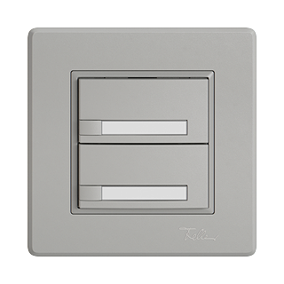 EDIZIO.liv • Pulsante UNI • Collegamento ad innesto (senza connettori per circuiti stampati) • Sistema de fissagio SNAPFIX® • Senza LED • Con targhetta • Tasto doppio • Comando a 1 tasto • Profondità 17 mm • GMI.A • grigio chiaro • IP20 • 96 x 96 mm (93 x 93 mm)