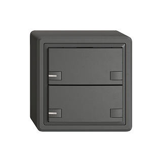 EDIZIO.liv • Pulsante UNI • Collegamento ad innesto (senza connettori per circuiti stampati) • Con LED blu • Tasto doppio • Comando a 2 tasti • Sistema de fissagio SNAPFIX® • Altezza 59 mm • GX.54.A • grigio scuro • IP20 • 74 x 74 mm