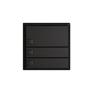 EDIZIO.liv • Pulsante UNI • Collegamento ad innesto (senza connettori per circuiti stampati) • Senza LED • Tasto triplo • Comando a 1 tasto • Sistema de fissagio SNAPFIX® • Profondità 17 mm • G.A • nero • IP20 • 60 x 60 mm