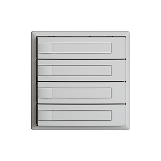 EDIZIOdue colore • Pulsante UNI • Collegamento ad innesto (senza connettori per circuiti stampati) • Senza LED • Con targhetta • Tasto quadruplo • Comando a 1 tasto • Profondità 17 mm • F • grigio chiaro • IP20 • 60 x 60 mm