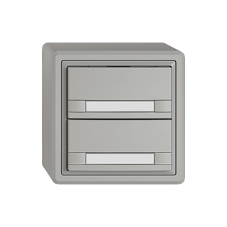EDIZIO.liv • Pulsante UNI • Interfaccia seriale, con protocollo • 5 V DC • Collegamento ad innesto • Senza LED • Con targhetta • Tasto doppio • Comando a 2 tasti • Sistema de fissagio SNAPFIX® • Altezza 59 mm • GX.54.A • grigio chiaro • IP20 • 74 x 74 mm