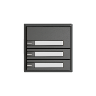 EDIZIO.liv • Pulsante UNI • Interfaccia seriale, con protocollo • 5 V DC • Collegamento ad innesto • Con LED rosso, verde, blu • Con targhetta • Tasto triplo • Comando a 1 tasto • Sistema de fissagio SNAPFIX® • Profondità 17 mm • G.A • grigio scuro • IP20 • 60 x 60 mm