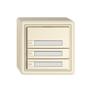 EDIZIO.liv • Pulsante UNI • Interfaccia seriale, con protocollo • 5 V DC • Collegamento ad innesto • Con LED rosso, verde, blu • Con targhetta • Tasto triplo • Comando a 1 tasto • Sistema de fissagio SNAPFIX® • Altezza 59 mm • GX.54.A • crema • IP20 • 74 x 74 mm