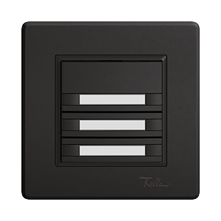 EDIZIO.liv • Pulsante UNI • Interfaccia seriale, con protocollo • 5 V DC • Collegamento ad innesto • Sistema de fissagio SNAPFIX® • Senza LED • Con targhetta • Tasto triplo • Comando a 2 tasti • Profondità 17 mm • GMI.A • nero • IP20 • 96 x 96 mm (93 x 93 mm)