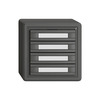 EDIZIO.liv • UNI-Taster • Seriell, mit Protokoll • 5 V DC • Steckverbinder • Ohne LED • Mit Papiereinlage • Vierfach-Taste • 2-Tastenbedienung • SNAPFIX® Befestigungssystem • Anbauhöhe 59 mm • GX.54.A • dunkelgrau • IP20 • 74 x 74 mm