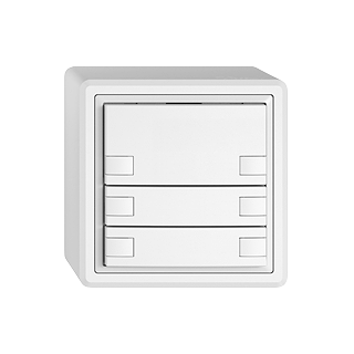 EDIZIO.liv • Poussoir UNI • Sériel, avec protocole • 5 V DC • Connecteur enfichable • Sans LED • Touche sextuple • Commande à 1 touche • Système de fixation SNAPFIX® • Hauteur 59 mm • GX.54.A • blanc • IP20 • 74 x 74 mm