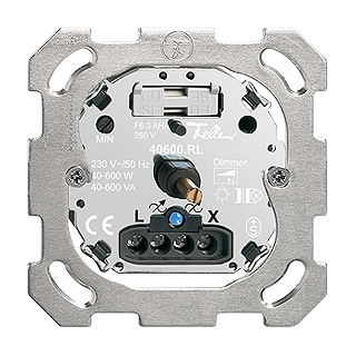 Variatore di luce rotativo a taglio di fase in salita • 230 V AC, 50 Hz • Per lampade ad incandescenza e lampade alogene a bassa tensione • 40-600 W ohmnico, 40-600 VA induttivo • BSE