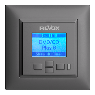 Display da parete • Navigazione 4 tasti • Display LC con illuminazione blu e modo di risparmio • Funzione timer integrata • Ricevitore per telecomando REVOX • Indicazione delle funzioni e informazioni più importanti • Profondità 20 mm • FMI • grigio scuro • IP20 • 88 x 88 mm