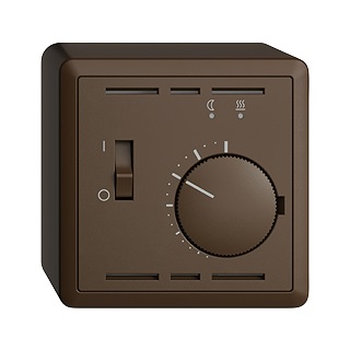 Termostato • Per riscaldamenti a pavimento elettrici • Con sensore temperatura (NTC) esterno + cavo (4 m) • 230 V AC, 50 Hz • Corrente nominale 16 A (corrente reattiva 4 A) • Differenza temperatura di commutazione circa 1 K • Abassamento di temperatura selezionabile 3 K o 5 K • Campo di temperatura del sensore da +10 °C a +40 °C • Con morsetti a vite • Altezza 59 mm • FX.54 • coffee • IP20 • 88 x 88 mm