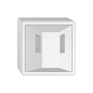 EDIZIO.liv • Rilevatore di movimento pirios 180 D10 • Variatore 1-10 V • Contatto di commutazione 2 A, 230 V AC • Uscita regolata 1-10 V per alimentatori elettronici EVG mass. 600 VA • Assorbimento di corrente mass. 100 mA • Valore di variazione luminosa regolabile da 0% a 100% • Funzioni speciali come illuminazione generale e preavviso di disinserimento • Soglia della luminosità / sensibilità / temporizzazione regolabile • Funzione a impulso • Entrata stazione secondaria per ampliamento settoriale (rete semplice) • Angolo di rilevamento 180/90° • Altezza di montaggio 1,1 m, campo di rilevamento tangenziale 12 m • Pulsante, se illuminato: (7563ARK..) • Entrata pulsante per commutazione ecologica, funzione retrigger e 4h di durata ON o 4h di durata OFF mediante (contatto di chiusura) • Modalità test con LED di quitanza • Segnalazione di movimento con LED attivabile • Campo di potenza 0,4 W • Sistema de fissagio SNAPFIX® • Altezza 55 mm • GX.54.A • bianco • IP20 • 74 x 74 mm