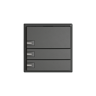 EDIZIO.liv • Poussoir KNX RGB • 21-30 V DC SELV • Absorbation de base 250 mW max. • Borne de raccordement bus KNX • Avec coupleur de bus KNX Secure • Se compose de unité fonctionnelle avec jusqu'à huit configurations de touches possibles • Avec capteur de température • Système de fixation SNAPFIX® • Avec RGB LED rouge, vert, bleu, blanc, jaune, violet, et 2 couleurs utilisateur librement définissables. • Puissance supplémentaire par LED 10 mW max. • Touche triple • Commande à 1 touche • Profondeur 22 mm • G.A • gris foncé • IP20 • 60 x 60 mm