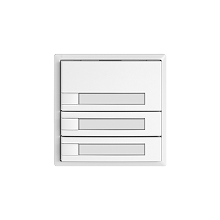 EDIZIO.liv • Pulsante KNX RGB • 21-30 V DC SELV • Fabbisogno di base mass. 250 mW • Morsetto di collegamento bus KNX • Con accoppiatore bus KNX Secure • Consiste in unità funzionale con fino a otto possibili assegnazioni di tasti • Con sensore temperatura • Sistema de fissagio SNAPFIX® • Senza LED • Con targhetta • Tasto triplo • Comando a 1 tasto • Profondità 22 mm • G.A • bianco • IP20 • 60 x 60 mm