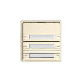 EDIZIO.liv • Poussoir KNX RGB • 21-30 V DC SELV • Absorbation de base 250 mW max. • Borne de raccordement bus KNX • Avec coupleur de bus KNX Secure • Se compose de unité fonctionnelle avec jusqu'à huit configurations de touches possibles • Avec capteur de température • Système de fixation SNAPFIX® • Avec RGB LED rouge, vert, bleu, blanc, jaune, violet, et 2 couleurs utilisateur librement définissables. • Puissance supplémentaire par LED 10 mW max. • Avec étiquette en papier • Touche sextuple • Commande à 1 touche • Profondeur 22 mm • G.A • crema • IP20 • 60 x 60 mm