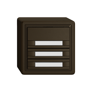 EDIZIO.liv • Poussoir KNX RGB • 21-30 V DC SELV • Absorbation de base 250 mW max. • Borne de raccordement bus KNX • Avec coupleur de bus KNX Secure • Se compose de unité fonctionnelle avec jusqu'à huit configurations de touches possibles • Avec capteur de température • Système de fixation SNAPFIX® • Sans LED • Avec étiquette en papier • Touche sextuple • Commande à 1 touche • Hauteur 44 mm • GX.54.A • umbra • IP20 • 74 x 74 mm