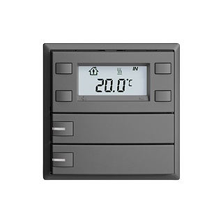 EDIZIOdue colore • Pulsante RTH KNX RGB • 21-30 V DC SELV • Fabbisogno di base mass. 250 mW • Potenza supplementare per ogni LED mass. 30 mW • In aggiunta per retroilluminazione LCD mass. 200 mW • Morsetto di collegamento bus KNX • Con BCU • Gli apparecchi KNX con designazione supplementare RGB possono essere programmati esclusivamente con la rispettiva applicazione riportante la designazione RGB. • Con RGB LED rosso, verde, blu, bianco, giallo, vialo e 2 colori liberamente definibili dall'utente • Tasto doppio • Comando a 1 tasto • Profondità 22 mm • F • grigio scuro • IP20 • 60 x 60 mm