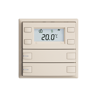 EDIZIOdue colore • Pulsante RTH KNX RGB • 21-30 V DC SELV • Fabbisogno di base mass. 250 mW • Potenza supplementare per ogni LED mass. 30 mW • In aggiunta per retroilluminazione LCD mass. 200 mW • Morsetto di collegamento bus KNX • Con BCU • Gli apparecchi KNX con designazione supplementare RGB possono essere programmati esclusivamente con la rispettiva applicazione riportante la designazione RGB. • Con RGB LED rosso, verde, blu, bianco, giallo, vialo e 2 colori liberamente definibili dall'utente • Tasto doppio • Comando a 2 tasti • Profondità 22 mm • F • crema • IP20 • 60 x 60 mm