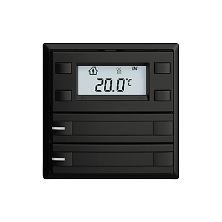 EDIZIOdue colore • Pulsante RTH KNX RGB • 21-30 V DC SELV • Fabbisogno di base mass. 250 mW • Potenza supplementare per ogni LED mass. 30 mW • In aggiunta per retroilluminazione LCD mass. 200 mW • Morsetto di collegamento bus KNX • Con BCU • Gli apparecchi KNX con designazione supplementare RGB possono essere programmati esclusivamente con la rispettiva applicazione riportante la designazione RGB. • Con RGB LED rosso, verde, blu, bianco, giallo, vialo e 2 colori liberamente definibili dall'utente • Con targhetta • Tasto doppio • Comando a 2 tasti • Profondità 22 mm • F • nero • IP20 • 60 x 60 mm