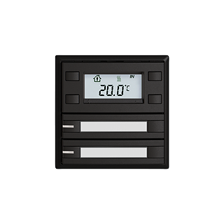 EDIZIO.liv • Unità funzionale RTH KNX RGB • Per pulsanti RTH KNX RGB • Con LED • Con display • Senza tasto • 1-4 funzioni • Sistema de fissagio SNAPFIX® • nero