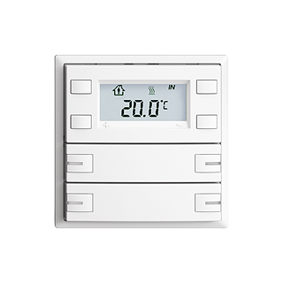 EDIZIOdue colore • Pulsante RTH KNX RGB • 21-30 V DC SELV • Fabbisogno di base mass. 250 mW • Potenza supplementare per ogni LED mass. 30 mW • In aggiunta per retroilluminazione LCD mass. 200 mW • Morsetto di collegamento bus KNX • Con BCU • Gli apparecchi KNX con designazione supplementare RGB possono essere programmati esclusivamente con la rispettiva applicazione riportante la designazione RGB. • Con RGB LED rosso, verde, blu, bianco, giallo, vialo e 2 colori liberamente definibili dall'utente • Tasto quadruplo • Comando a 1 tasto • Profondità 22 mm • F • bianco • IP20 • 60 x 60 mm