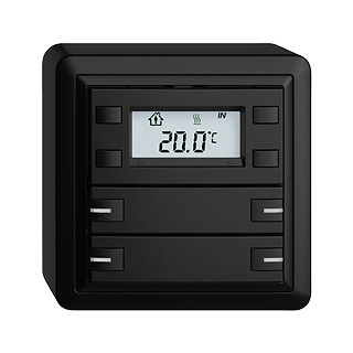 EDIZIOdue colore • Pulsante RTH KNX RGB • 21-30 V DC SELV • Fabbisogno di base mass. 250 mW • Potenza supplementare per ogni LED mass. 30 mW • In aggiunta per retroilluminazione LCD mass. 200 mW • Morsetto di collegamento bus KNX • Con BCU • Gli apparecchi KNX con designazione supplementare RGB possono essere programmati esclusivamente con la rispettiva applicazione riportante la designazione RGB. • Con RGB LED rosso, verde, blu, bianco, giallo, vialo e 2 colori liberamente definibili dall'utente • Tasto quadruplo • Comando a 1 tasto • Altezza 44 mm • FX.39 • nero • IP20 • 74 x 74 mm
