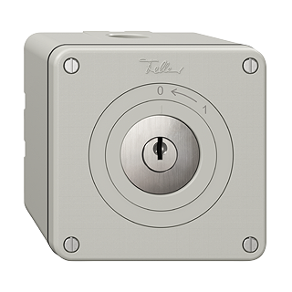 Pulsante girevole • Con chiusura di sicurezza e 2 chiavi • 16 A, 240/400 V AC • Con richiamo unilaterale • Con morsetti a vite • Chiusura • 1 L • DI 0 1 • Altezza 64 mm • NAPU.Q • grigio chiaro • IP21 • 87 x 87 mm • Resistenza agli urti: IK02