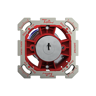 Il sistema di fissaggio in due fasi Feller SNAPFIX® riduce il lavoro di progettazione, ordinazione e installazione grazie a un ritaglio unitario simmetrico nella placca di fissaggio e all'adattatore rosso sull'unità funzionale. Quest'ultimo viene inserito a scatto (SNAP) nella placca di fissaggio e poi i quattro fermi agli angoli vengono fissati (FIX) in posizione con il cacciavite n.2. Feller SNAPFIX® ha un design modulare ed è adatto a tutte le funzioni Feller.