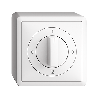 Drehschalter • Mit Drehgriff • 16 A, 240/400 V AC • Mit Schraubklemmen • LED-Last max: 200 W • Umschalter • 2/1 L • KS 0 - 1 - 0 - 2 • Anbauhöhe 70 mm • FX.54 • weiss • IP20 • 74 x 74 mm