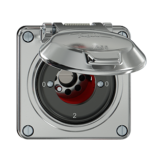 ELEMENT • Interruttore rotativo • Per serrature di sicurezza, senza cilindro • 16 A, 240/400 V AC • Con morsetti a vite • Carico LED max: 200 W • Disco frontale 60 mm • Commutatore • 2/1 L • DI 0 - 1 - 0 - 2 • Sistema de fissagio SNAPFIX® • G.CO.Q.A • alluminio • IP55 • 91 x 87 mm