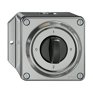 ELEMENT • Interruttore rotativo • Con manopola girevole • 16 A, 240/400 V AC • Con morsetti a vite • Carico LED max: 200 W • Commutatore • 2/1 L • DI 0 - 1 - 0 - 2 • Sistema de fissagio SNAPFIX® • Altezza 79 mm • GAP.Q.A • alluminio • IP55 • 96 x 111 mm • Resistenza agli urti: IK06