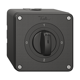 Interruttore rotativo • Con manopola girevole • 16 A, 240/400 V AC • Con morsetti a vite • Carico LED max: 200 W • Commutatore • 2/1 L • DI 0 - 1 - 0 - 2 • Altezza 80 mm • NAP.Q • nero • IP55 • 87 x 87 mm • Resistenza agli urti: IK07