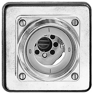 Interruttore rotativo • Per serrature di sicurezza, senza cilindro • 16 A, 240/400 V AC • Con morsetti a vite • Carico LED max: 200 W • Disco frontale 60 mm, per ritaglio 58 mm • Disinseritore • 0/1 L • DI 0 - 1 - 0 - 1 • Profondità 34 mm • GUPU • IP21 • 106 x 106 mm