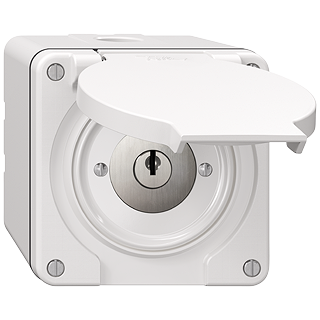 Pulsante girevole • Con chiusura di sicurezza e 2 chiavi • 16 A, 240/400 V AC • Con richiamo unilaterale • Con morsetti a vite • Chiusura • 2 L • DI 0 1 • Altezza 93 mm • NAP.Q • bianco • IP55 • 87 x 87 mm • Resistenza agli urti: IK07