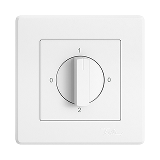 EDIZIO.liv • Interruttore rotativo • Con manopola girevole • 16 A, 240/400 V AC • Con morsetti a vite • Carico LED max: 200 W • Commutatore • 2/2 L • DI 0 - 1 - 0 - 2 • Sistema de fissagio SNAPFIX® • Profondità 44 mm • GMI.A • bianco • IP20 • 96 x 96 mm (93 x 93 mm)