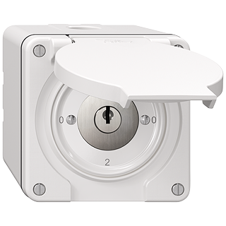 Interruttore rotativo • Con chiusura di sicurezza e 2 chiavi • 16 A, 240/400 V AC • Con morsetti a vite • Carico LED max: 200 W • Disco frontale 60 mm, per ritaglio 60 mm • Commutatore • 2/2 L • DI 0 - 1 - 0 - 2 • Altezza 93 mm • NAP.Q • bianco • IP55 • 87 x 87 mm • Resistenza agli urti: IK07 • 4 posizioni d'uscita