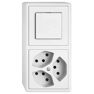 EDIZIO.liv • Combinazione • Verticale • Pulsante spento/invertitore 3/1 L - Presa tripla tipo 13 • Sistema de fissagio SNAPFIX® • Altezza 59 mm • GX.54.A • bianco • IP20 • 140 x 74 mm